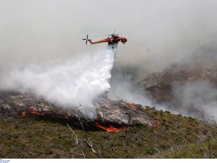 Σύμφωνα με το typosthess.gr, η φωτιά καίει ξερά χόρτα και ελιές.
