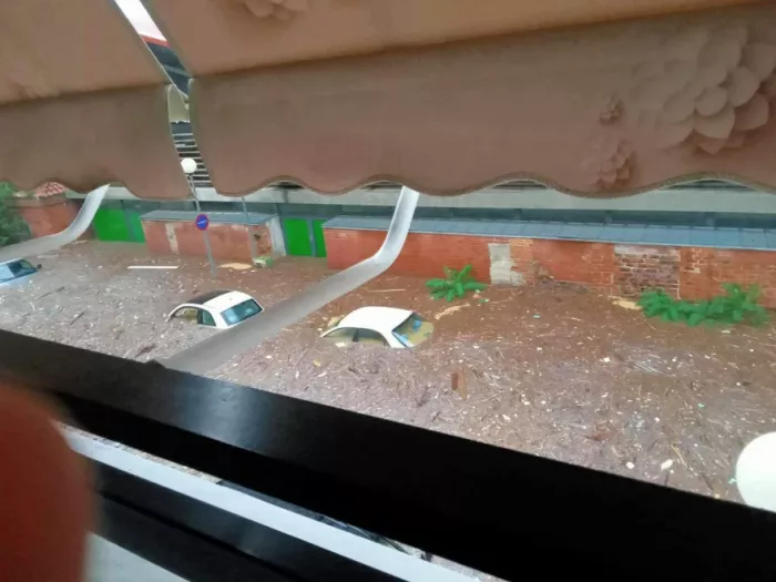 Τα νερά πλημμυρίζουν δρόμους, καταστήματα και ισόγεια κατοικιών ενώ ασύλληπτη είναι η εικόνα που ακολουθεί από τον Βόλο κοντά σε πολυκατάστημα.