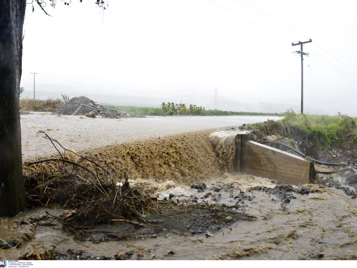 Η τεράστια λίμνη που έχει δημιουργηθεί στα χωριά του κάμπου του Δομοκού επεκτείνεται προς την πλευρά του Νέου Μοναστηριού, ενώ η ραγδαία βροχόπτωση συνεχίζεται.