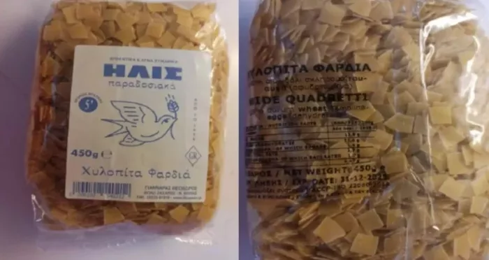 O Ενιαίος Φορέας Ελέγχου Τροφίμων (ΕΦΕΤ) και ειδικότερα η Περιφερειακή Διεύθυνση Δυτικής Ελλάδας του ΕΦΕΤ ζήτησε την άμεση ανάκληση του συνόλου της παρτίδας του προϊόντος «ΗΛΙΣ Χυλοπίτα Φαρδιά» των 450 gr.