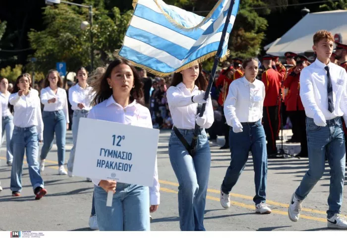 Πλήθος κόσμου παρακολούθησε τη μεγάλη παρέλαση στο κέντρο του Ηρακλείου. Η μαθητική και στρατιωτική παρέλαση ξεκίνησε στις 12 το μεσημέρι από τη λεωφόρο Δημοκρατίας στο ύψος του μνημείου της Μάχης Κρήτης.