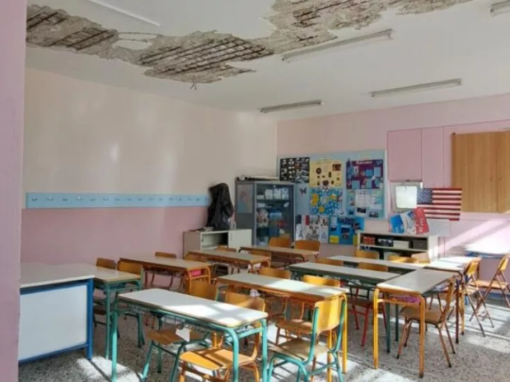 Ειδικότερα, το 10ο Δημοτικό σχολείο Χαϊδαρίου στην Αττική, προχωρά από σήμερα, Πέμπτη 16 Ιανουαρίου, σε τριήμερη αναστολή λειτουργίας γιατί το κτίριο όπου στεγάζεται παρουσιάζει τεράστιο πρόβλημα με τα ταβάνια αφού πέφτουν σοβάδες.