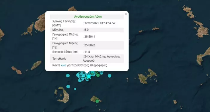 Στον ρυθμό των σεισμικών δονήσεων συνεχίζουν να «χορεύουν» τα νησιά των Κυκλάδων. Η σεισμικότητα στην περιοχή δεν φαίνεται να αποκλιμακώνεται καθώς νέα ισχυρή σεισμική δόνηση μεγέθους 5 βαθμών της κλίμακας Ρίχτερ σημειώθηκε στις 03:14 τα ξημερώματα της Τετάρτης μεταξύ Σαντορίνης και Αμοργού.