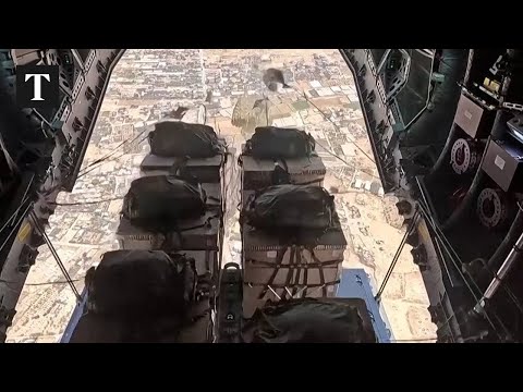 Συνολικά ερρίφθησαν 24 πακέτα «κάθε ένα από τα οποία περιείχε 500 κιλά, δηλαδή συνολικά 12 τόνο τροφίμων που ισοδυναμούν με περίπου 2.500 μερίδες», πρόσθεσε ο ίδιος.